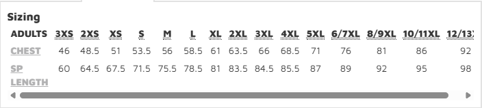 | XXS | XS | S | M | L | XL | 2XL | 3XL | 4XL | 5XL | 6/7XL | 8/9XL | 10/11XL | 12/13XL | |